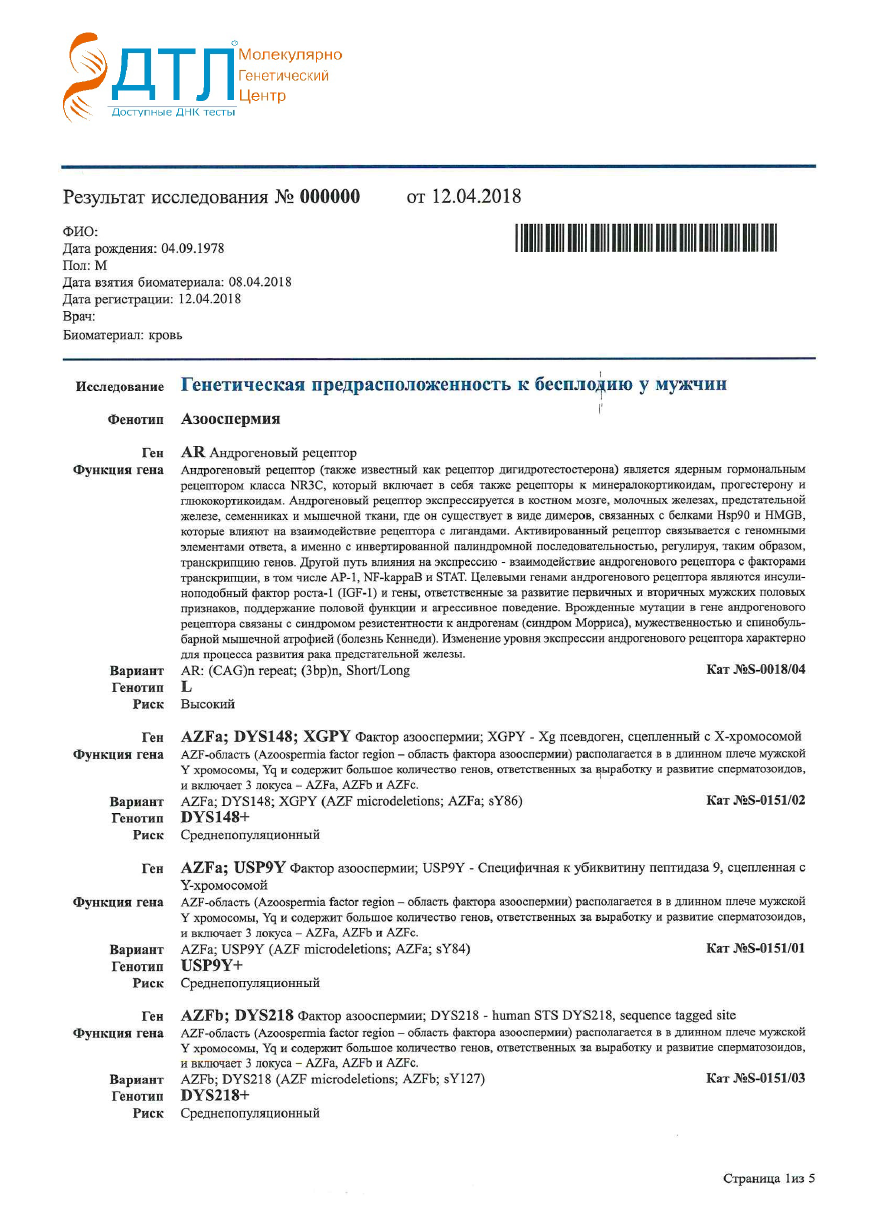 ДНК-тест генетическая предрасположенность к бесплодию у мужчин